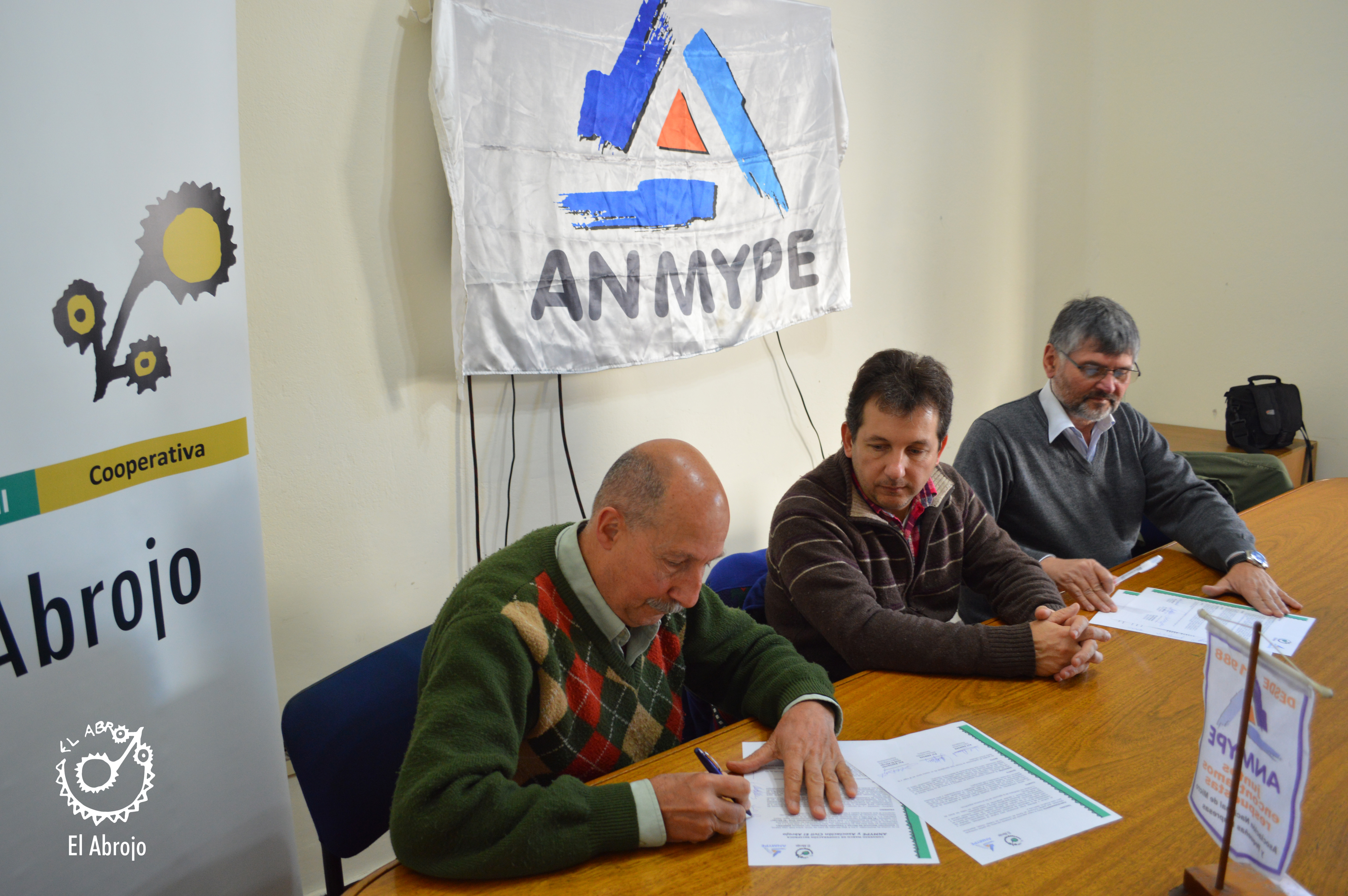 En la firma del convenio estuvieron presentes autoridades de ambas organizaciones, quienes firmaron fueron Julio Durante y Antonio Sabella, presidente y secretario de Anmype respectivamente y por el Abrojo, Pedro Delprato, coordinador del Programa Socio-Laboral.
